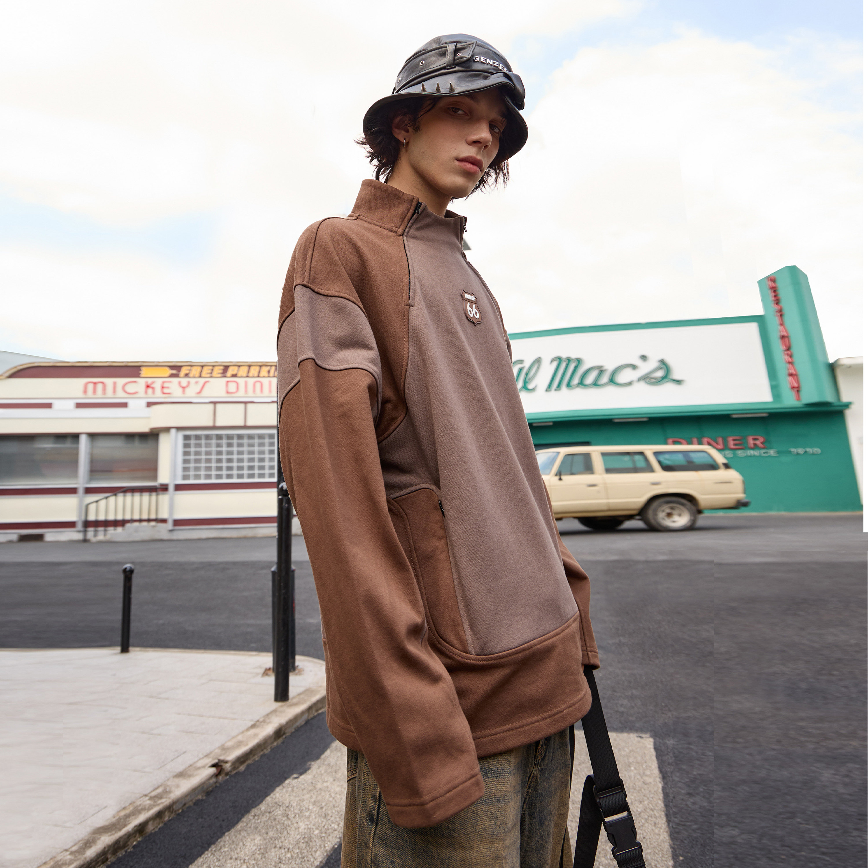 卫衣男美式 oversize潮牌宽松情侣外套 复古重磅加绒连帽卫衣秋冬款
