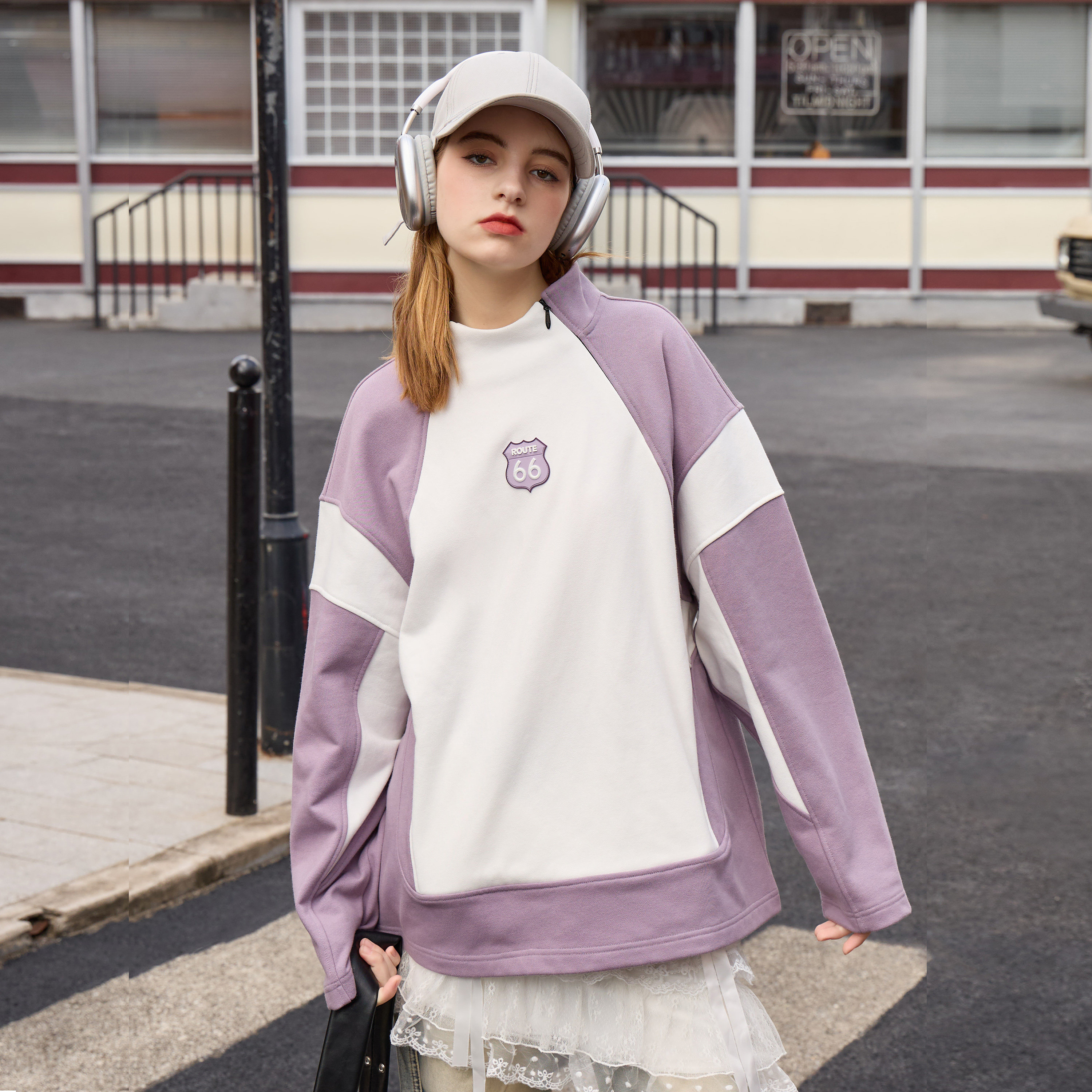 300斤大码 慵懒风polo领卫衣女2025秋冬微胖mm宽松拼接假两件上衣