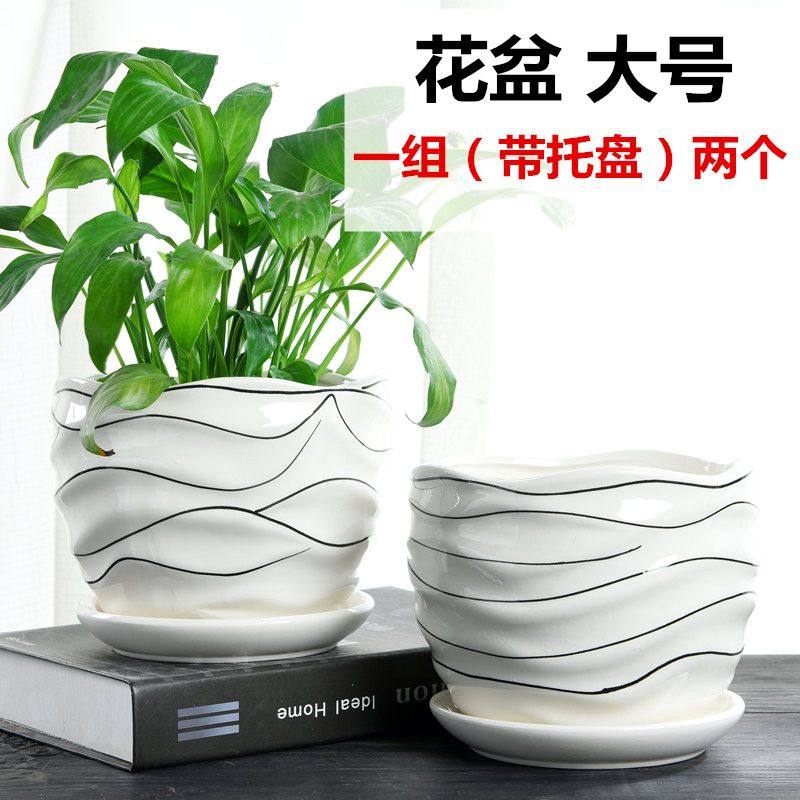 花盆陶瓷特价 清仓带托盘特大号创意绿萝吊兰桌面简约多肉盆景批发