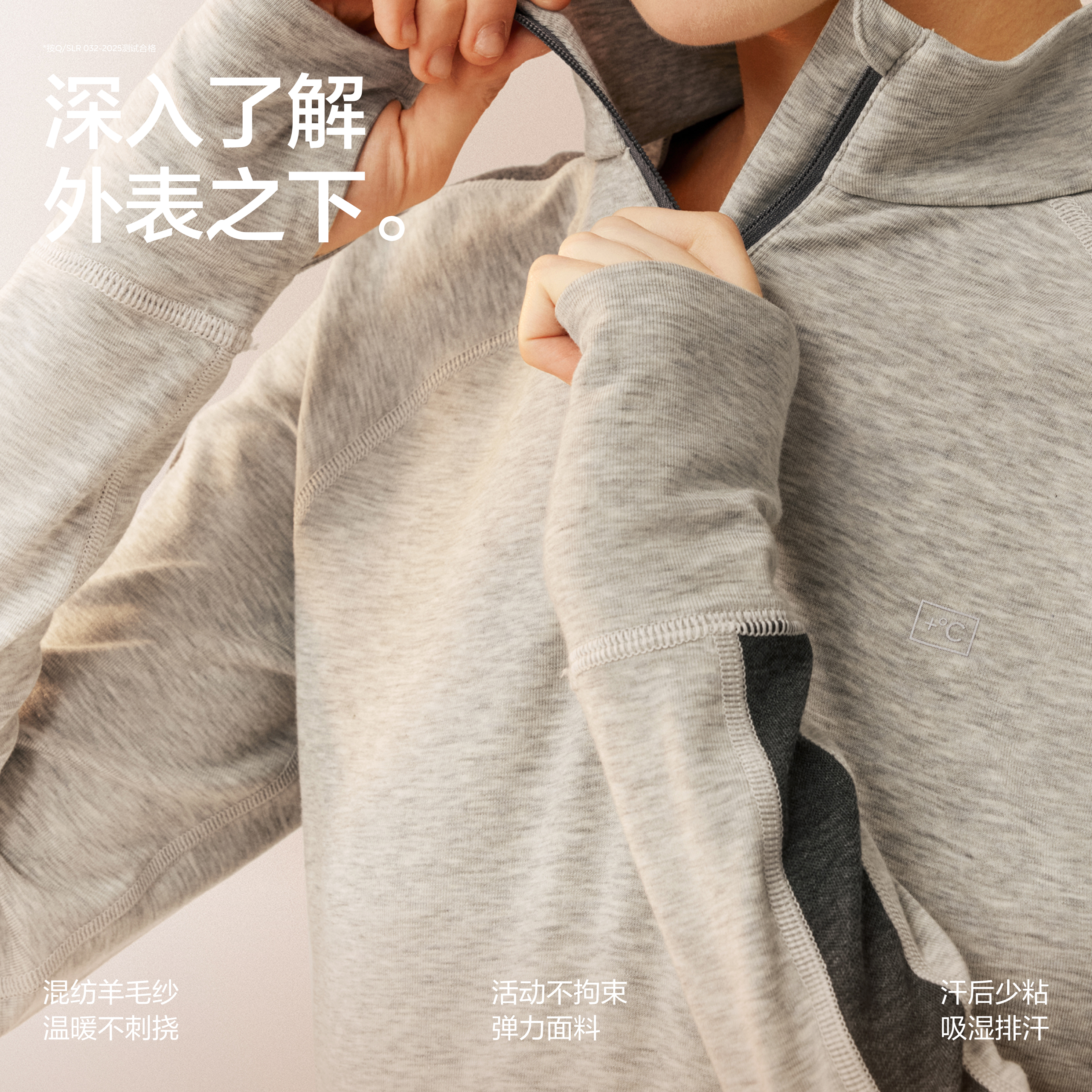 女士吸湿排汗羊毛半拉链长袖 蕉内热皮701 机能T恤 赵露思同款