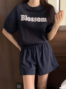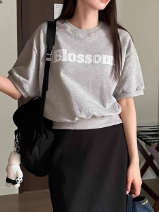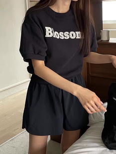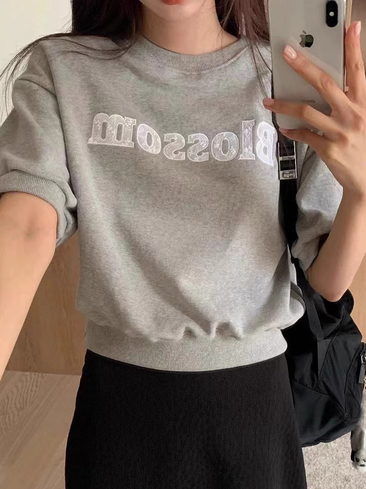 短袖 小众字母蕾丝刺绣提花宽松休闲百搭薄款 卫衣 法式 韩国chic夏季