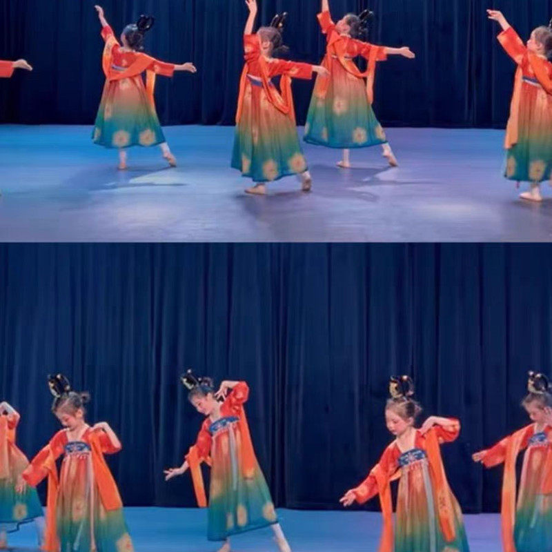 连衣裙 舞蹈演出唐装 汉服女童夏季 中国风超仙敦煌飞天异域儿童古装