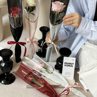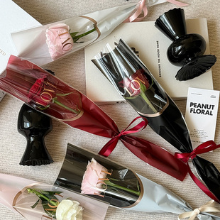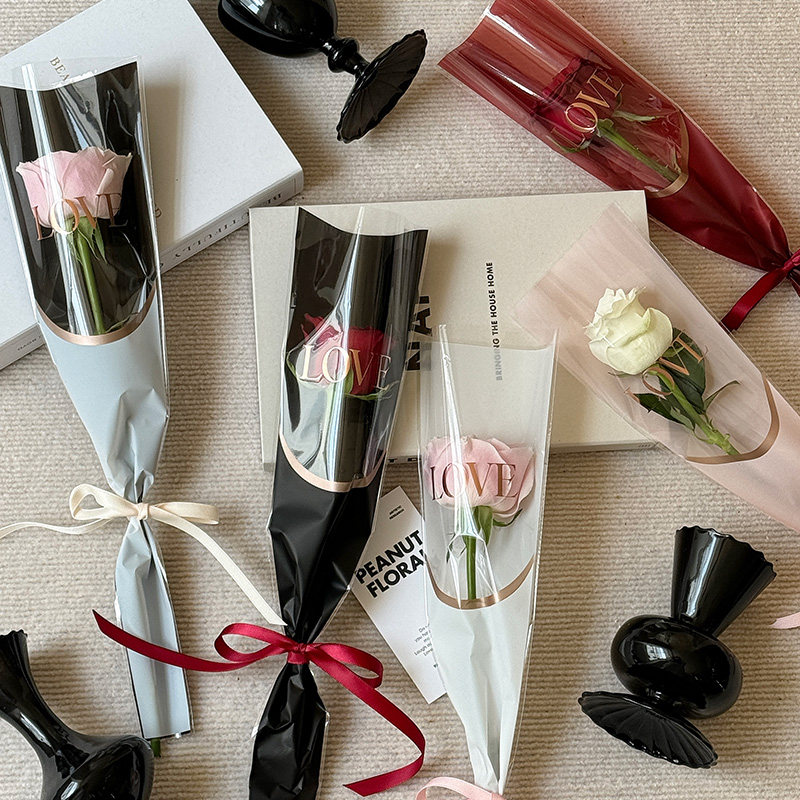 花喜爱网红花束袋LOVE烫金单支袋玫瑰花袋透明玻璃纸袋礼物包花袋