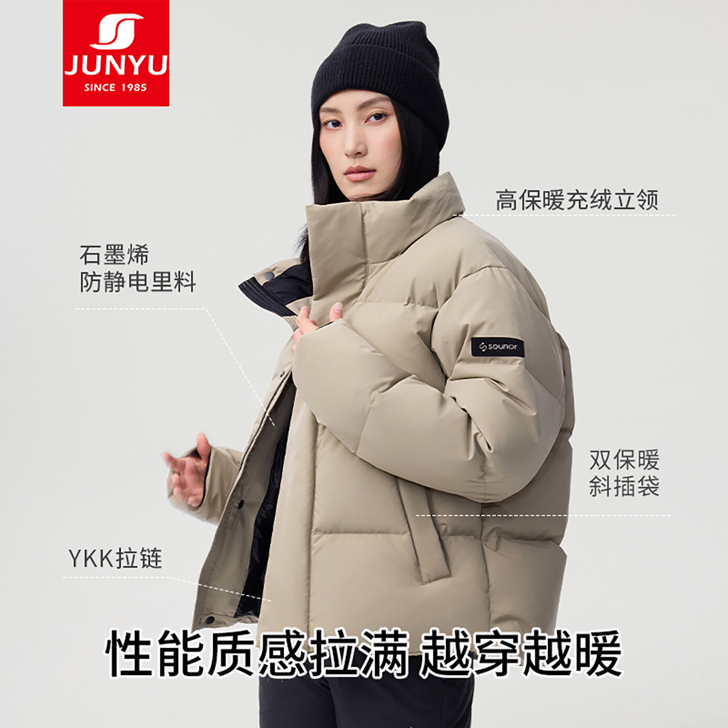 面包服女加厚新国标鹅绒服女加厚外套 君羽秋冬鹅绒服女短款 黑金