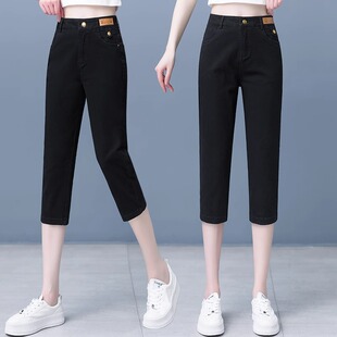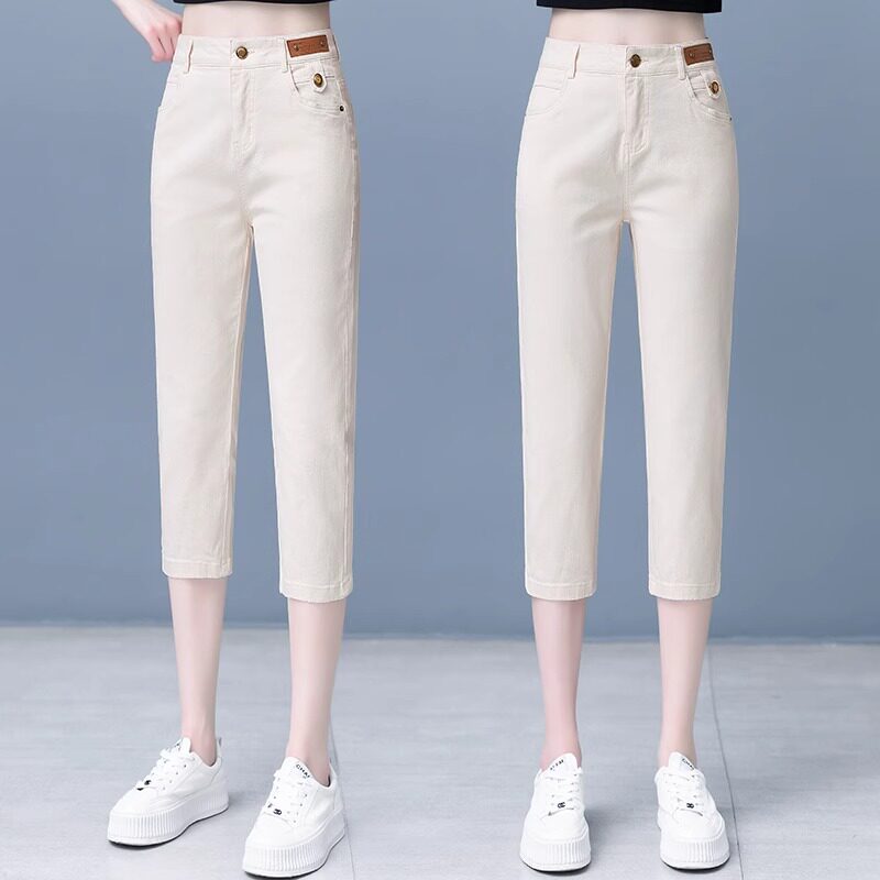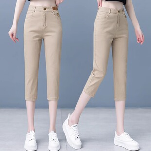 女夏季 休闲哈伦八分裤 薄款 高腰显瘦直筒中裤 子 2025新款 纯棉七分裤