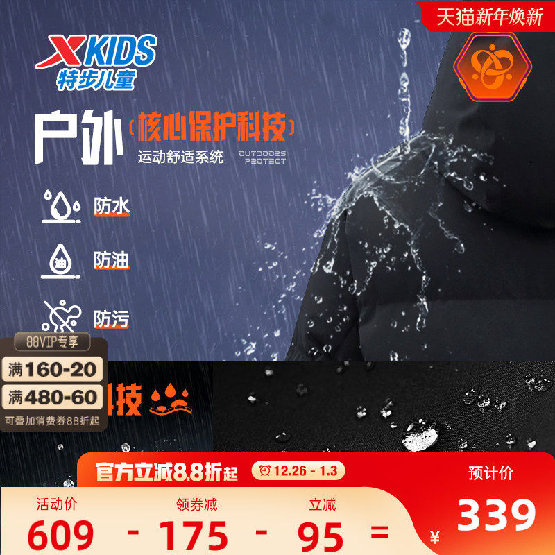 儿童三防外套大童冬装 羽绒服2025秋冬新款 男童保暖中长款 特步童装