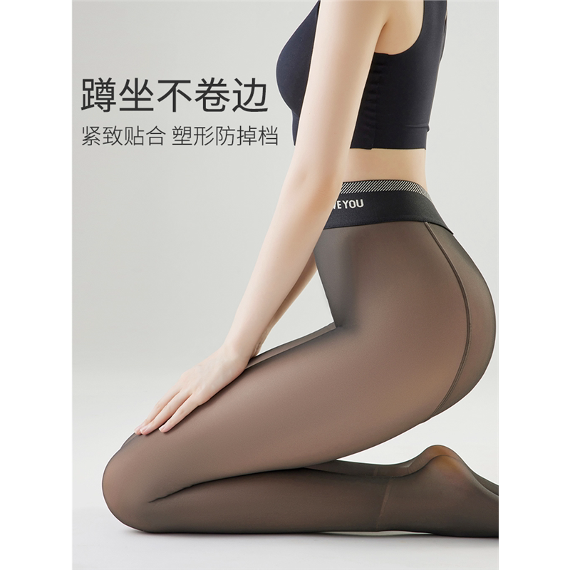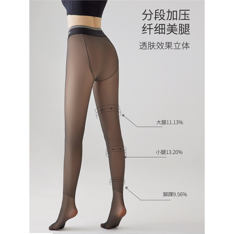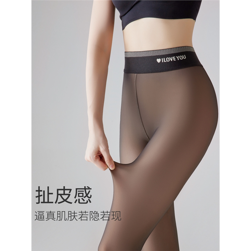 袜 黑丝袜加绒秋冬连裤 黑透肤光腿神器女春秋薄款 一体假透肉打底裤