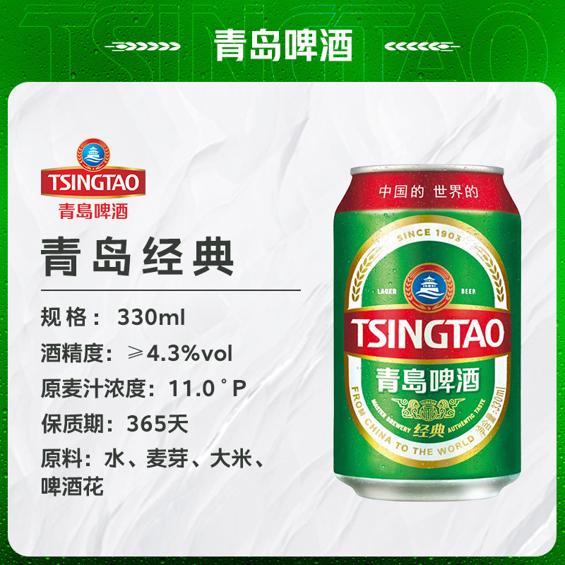 青岛啤酒经典 24听顺滑细腻口感醇正 10度550ml