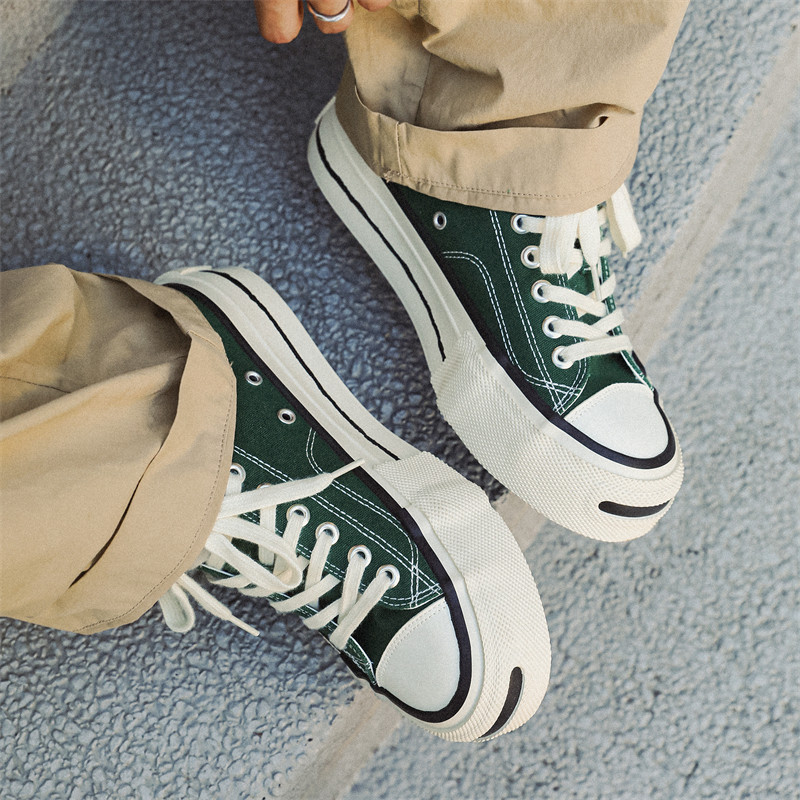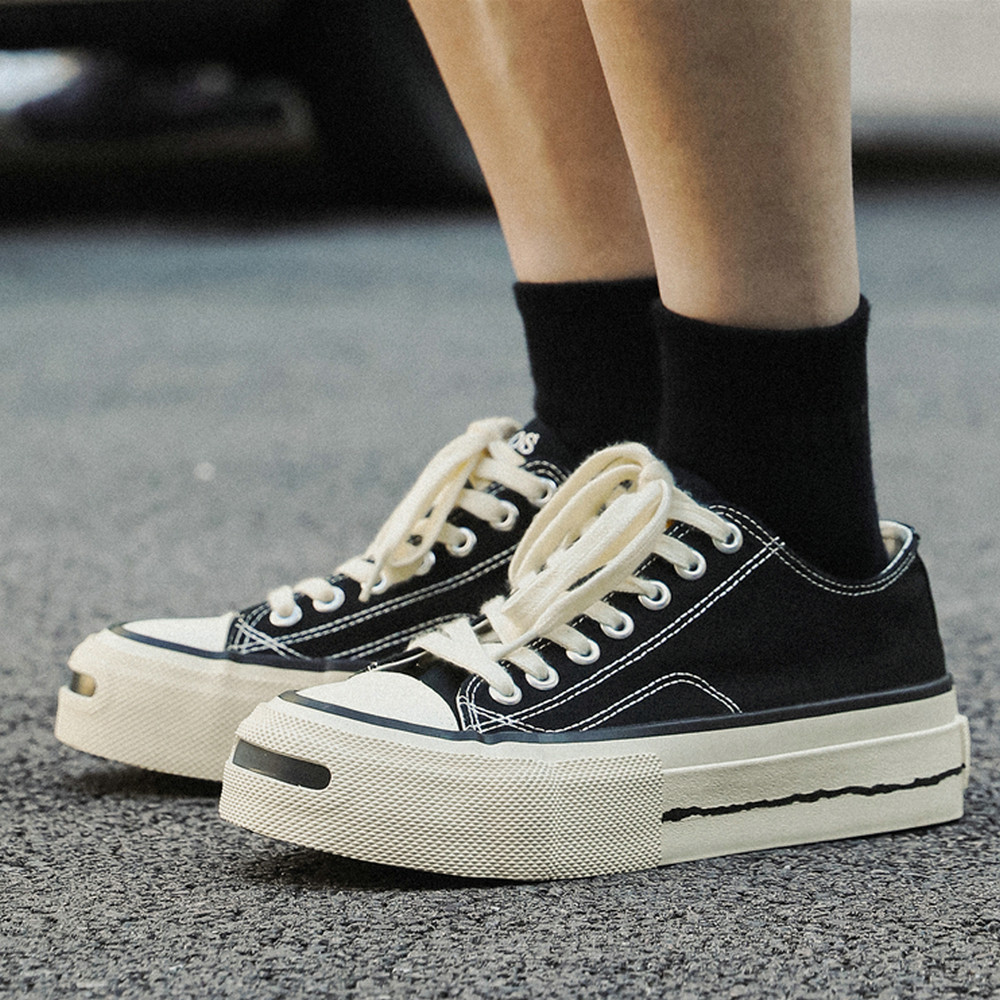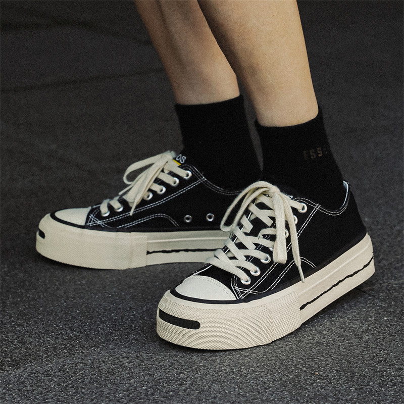 日系潮牌黑色厚底板鞋 小众设计感开口港风笑脸原创潮鞋 男鞋 帆布鞋