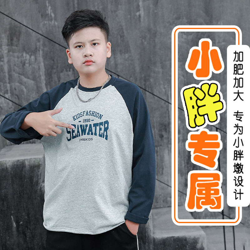 潮牌上衣青少年长袖 胖男童卫衣春秋款 加肥加大宽松大码 胖童装 新款