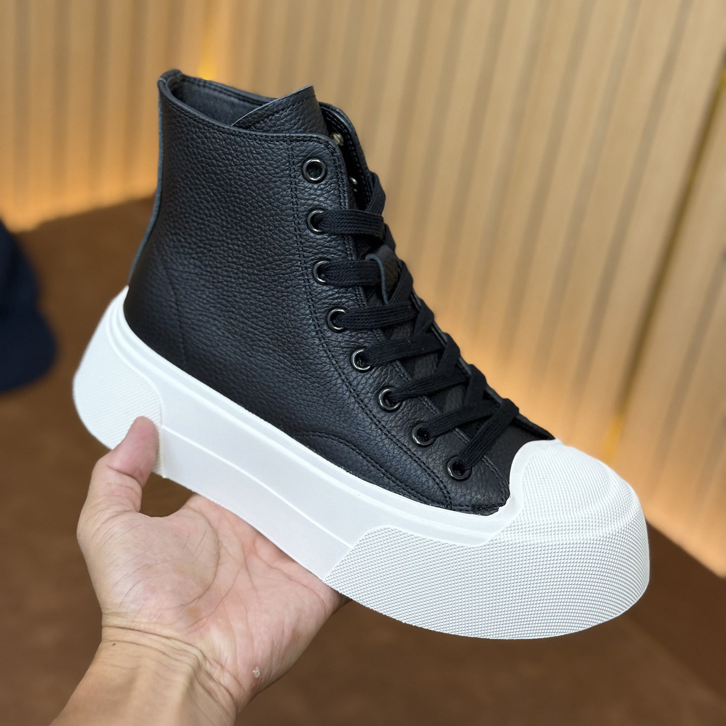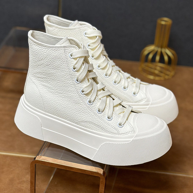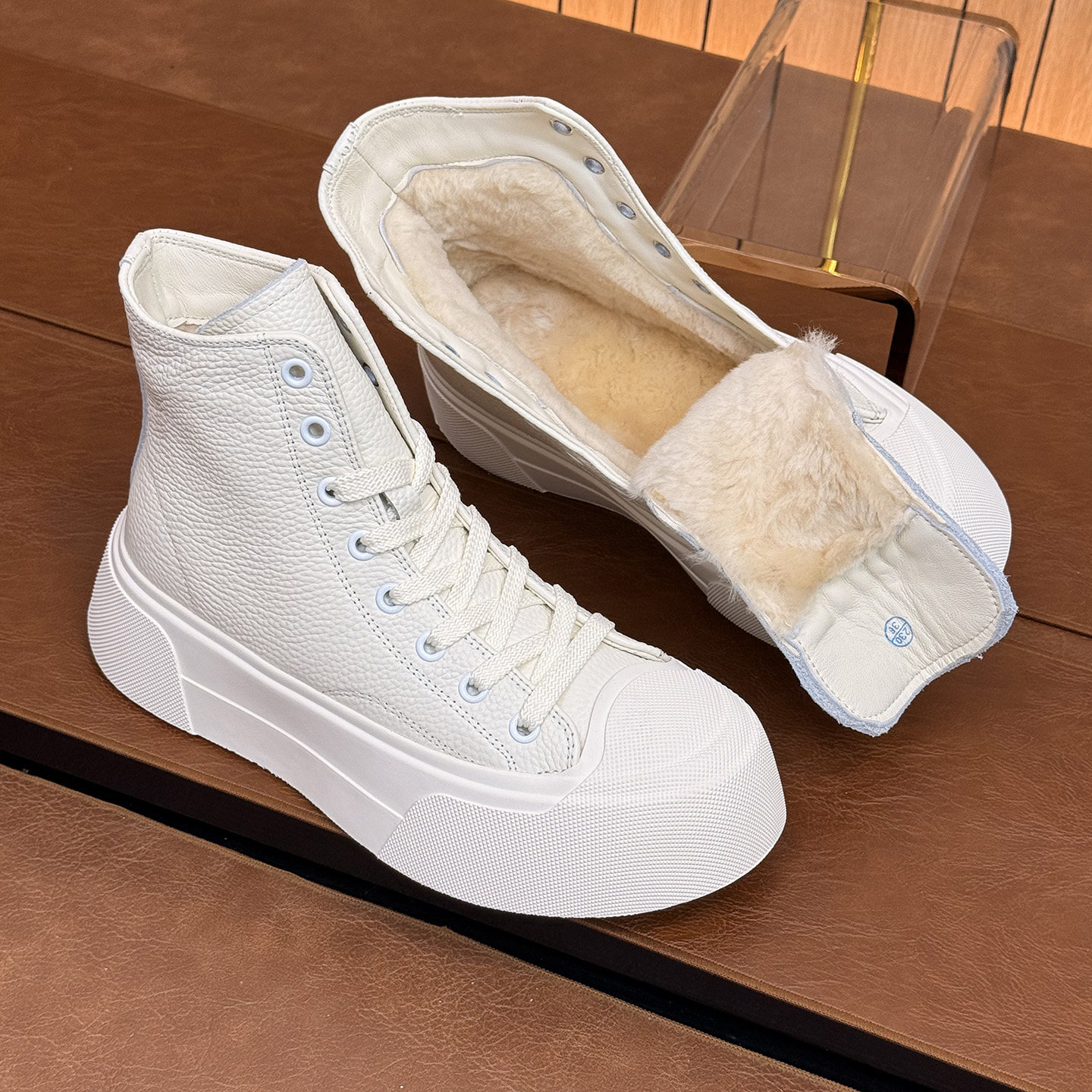 2025新款 平底厚底板鞋 秋冬爆款 高帮小白鞋 饼干鞋 加厚羊毛真皮女款