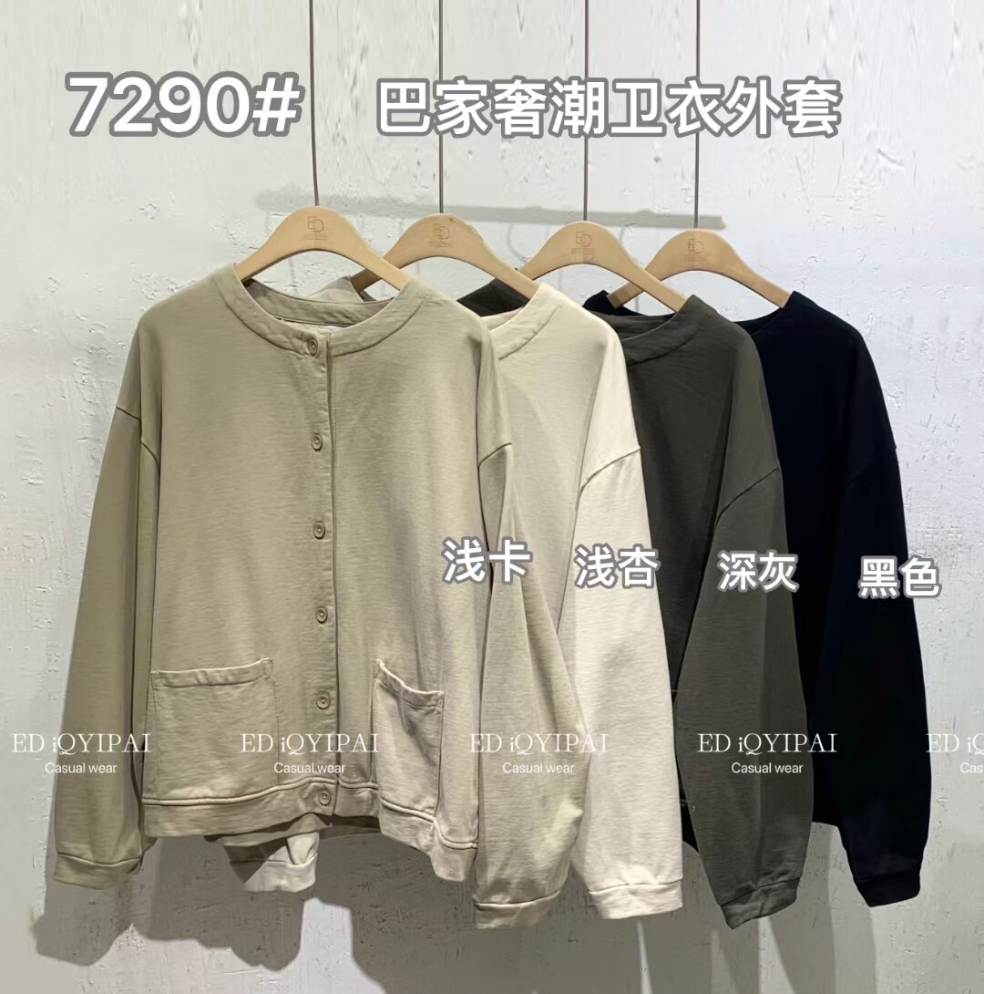 外搭上衣 春秋时尚 7290 奢潮圆领简约宽松百搭气质卫衣外套女装