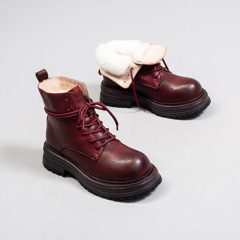 女士女鞋 加绒加厚马丁靴短靴真皮软底保暖棉鞋 2025新款 雪地靴冬季
