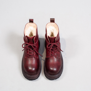 短靴 防滑惠州马丁靴女大码 真皮雪地靴女加绒加厚平底冬季 羊毛棉鞋