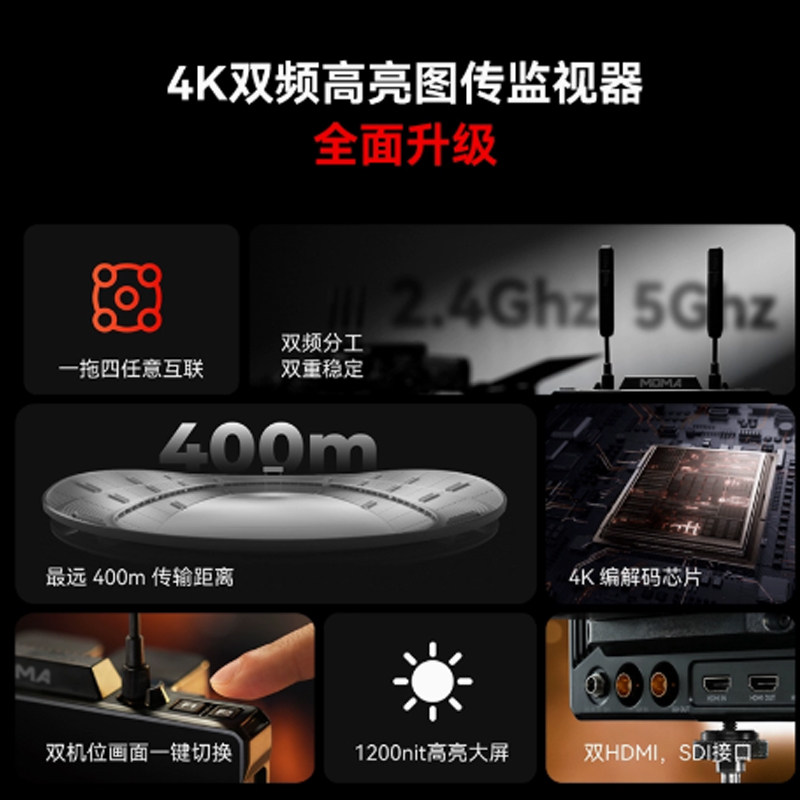 猛玛极影7图传监视器直播图传4k双频高清收发一体屏幕导演监视器