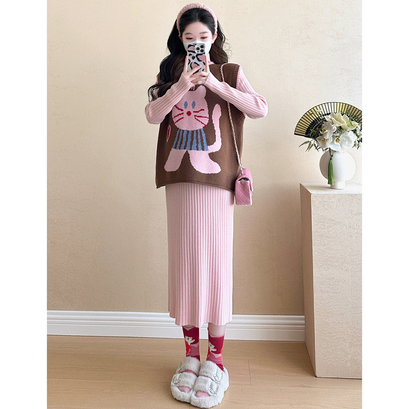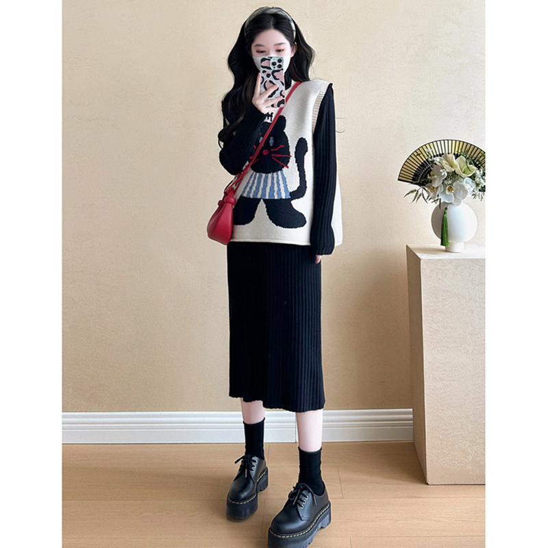 马甲内搭打底毛衣裙针织两件套女 秋冬韩版 孕妇连衣裙套装 2025新款