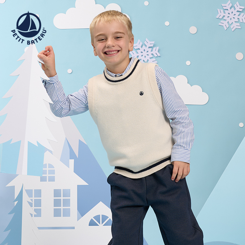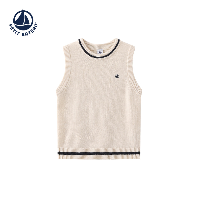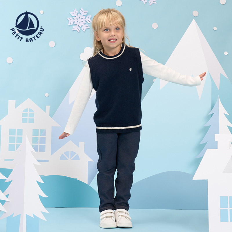 Petitbateau小帆船2024秋冬童装 100%山羊绒马甲A0ENF