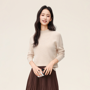 高级感上衣宽松打底针织衫 圆领100%纯山羊绒衫 女高端毛衣秋冬新款