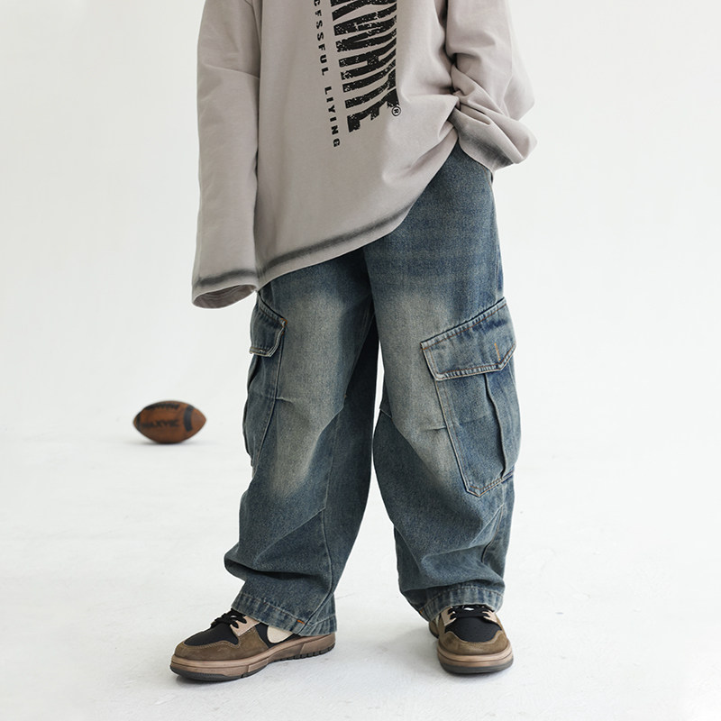 儿童牛仔裤 宝宝时髦长裤 2025年秋季 男童秋装 宽松 新款 多加潮牌童装