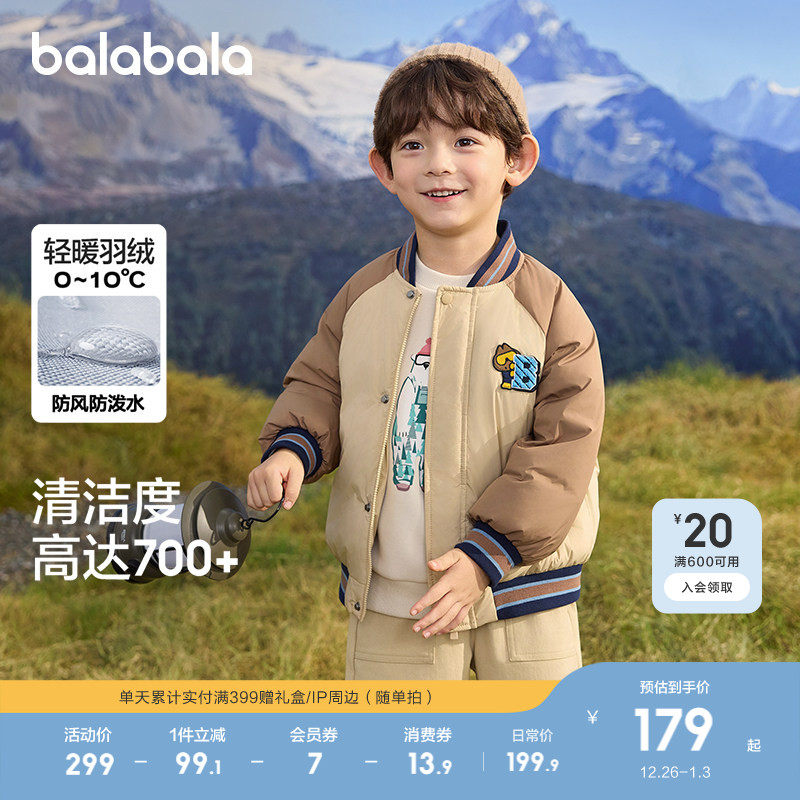 巴拉巴拉儿童羽绒服男童冬装 学院风棒球服外套潮上衣舒适户外潮款