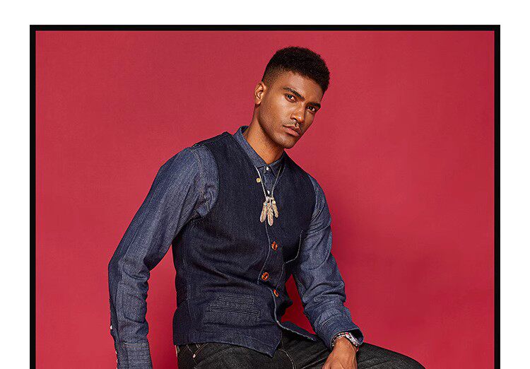 牛仔坎肩洗水多袋巴黎扣男绅士马甲 怀旧修身 春季 休闲复古背心美式