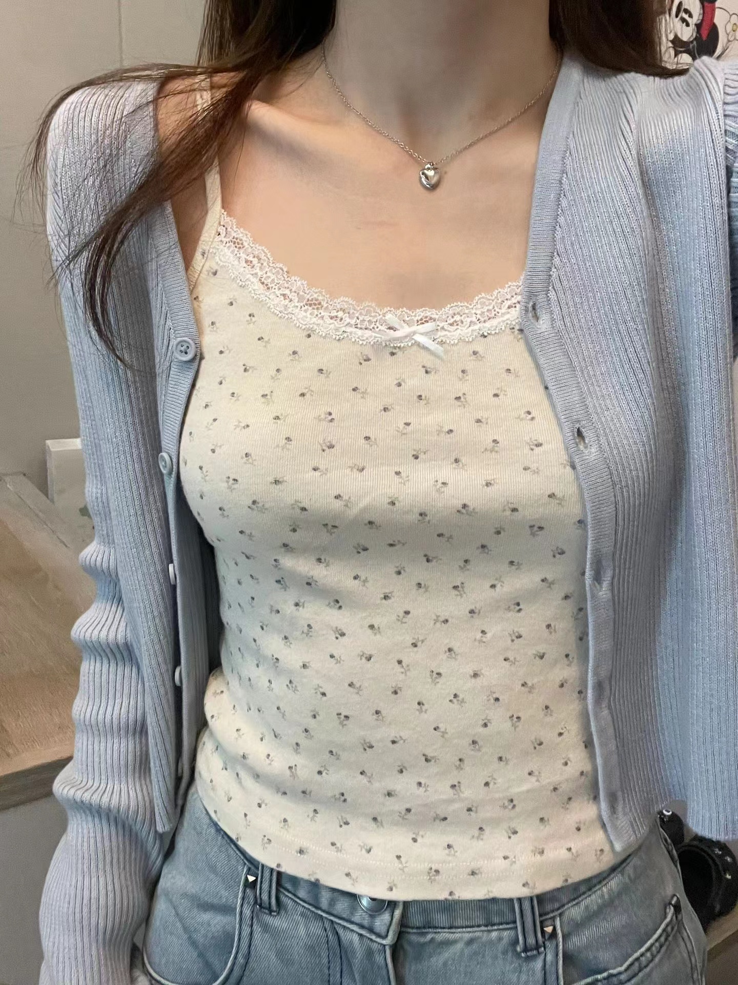 Brandy ins少女甜美bm碎花小吊带背心蕾丝边女内搭网红辣妹 Girl