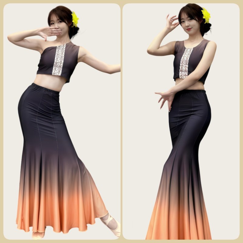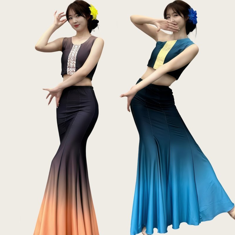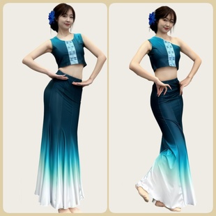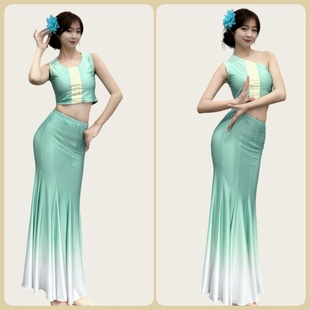 表演服女傣族服装 艺考服装 练功裙鱼尾半身裙 傣族舞蹈演出服装 新款