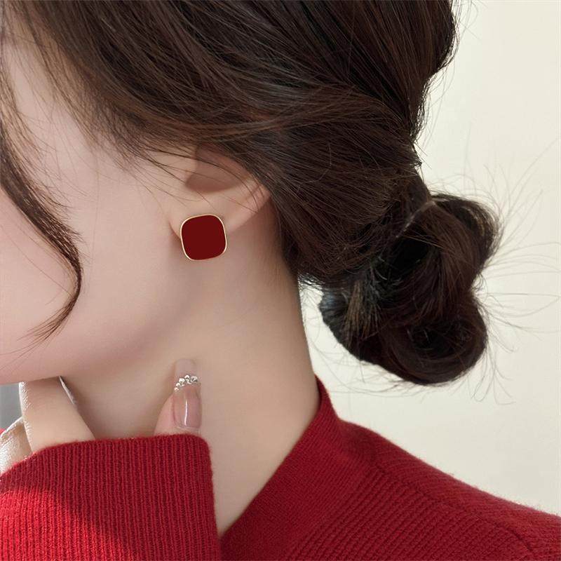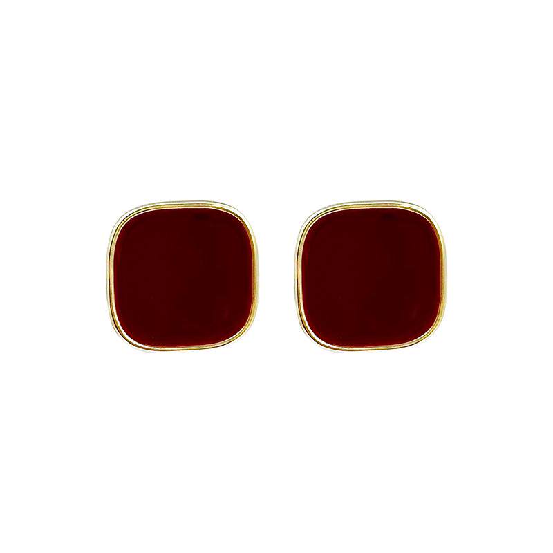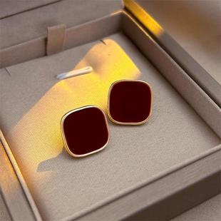 奥特莱斯品牌折扣店撤柜清仓捡漏酒红色耳环方形几何女耳钉耳饰品