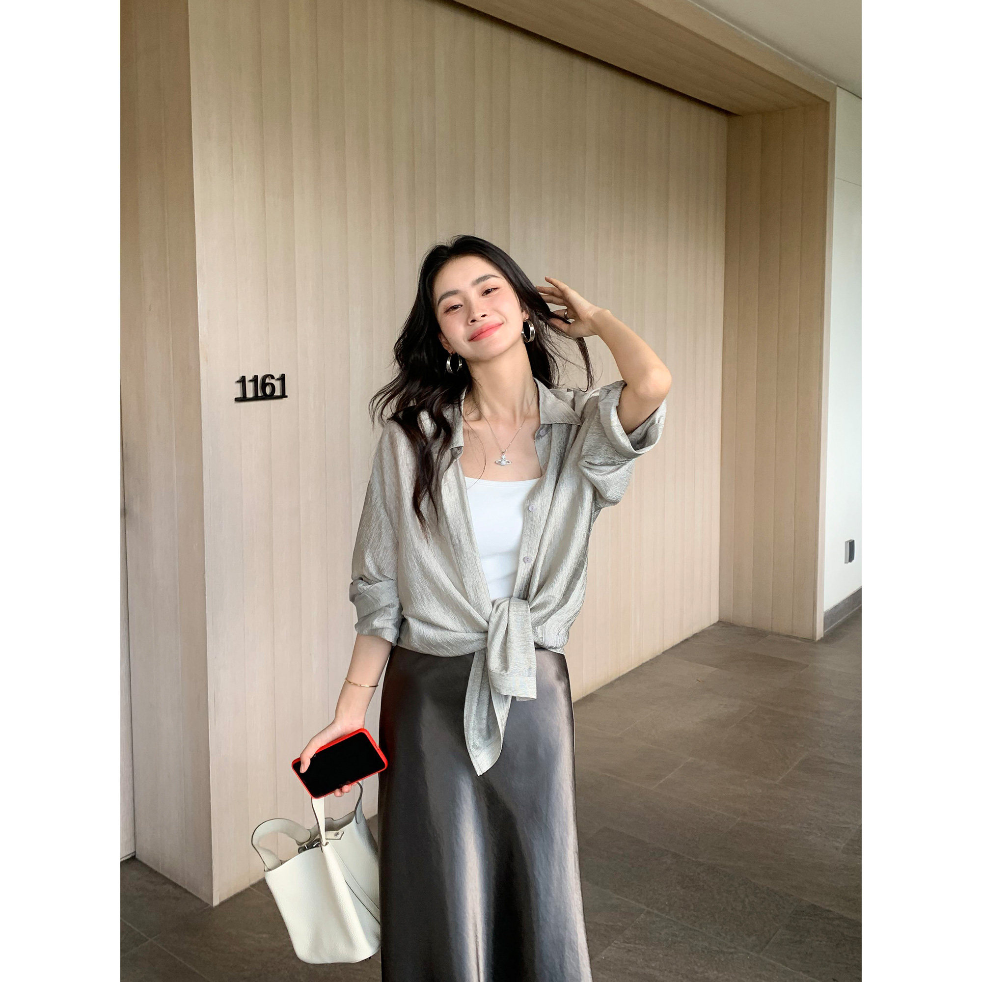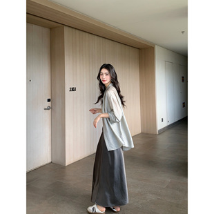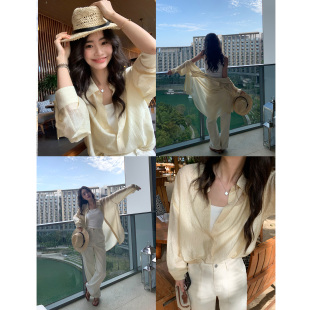 pusumede光泽肌理感长袖 女轻薄宽松防晒衬衣高级感气质上衣 衬衫