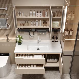 奶油风浴室柜陶瓷一体盆组合柜卫生间洗手盆实木洗脸洗漱台洗手池