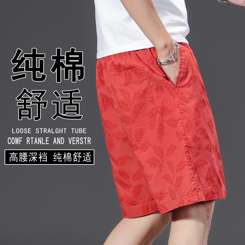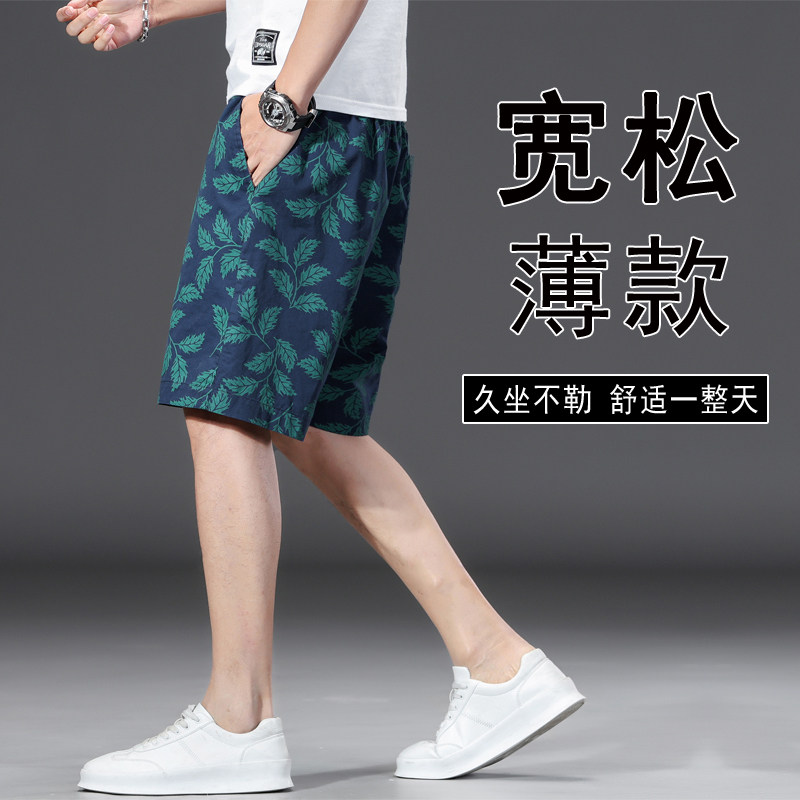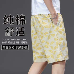 外穿潮流休闲五分裤 青年花裤 衩沙滩裤 夏季 大裤 男款 中裤 头 纯棉短裤