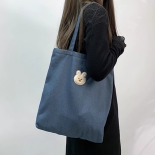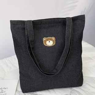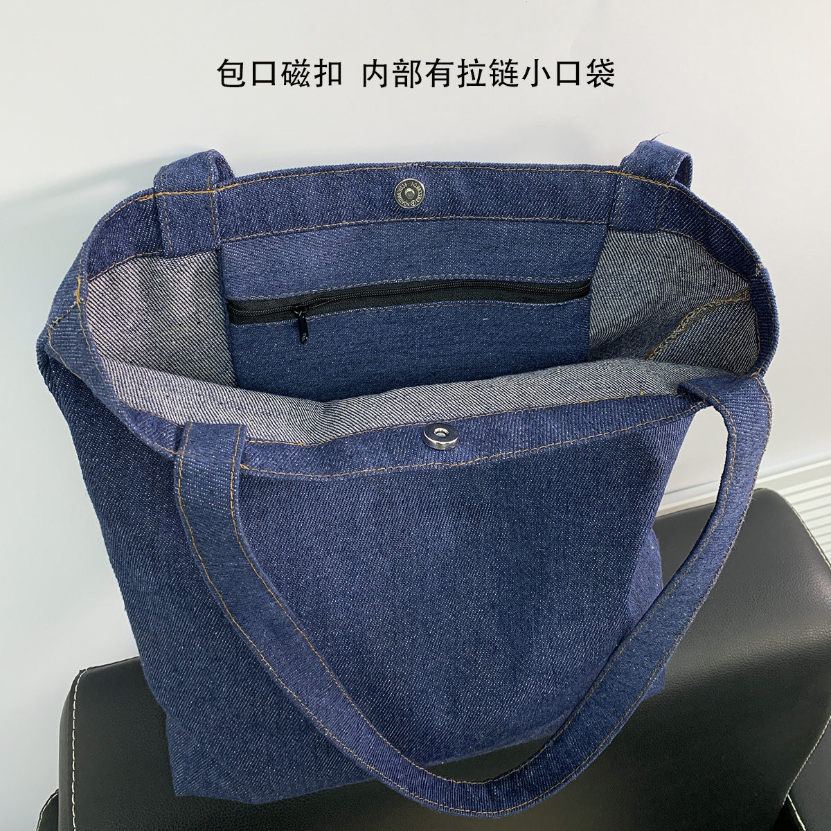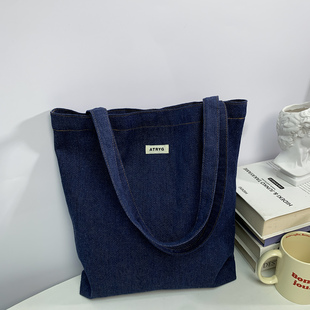 牛仔包女单肩包2025新款 ins小清新简约字母学生上课大容量托特包