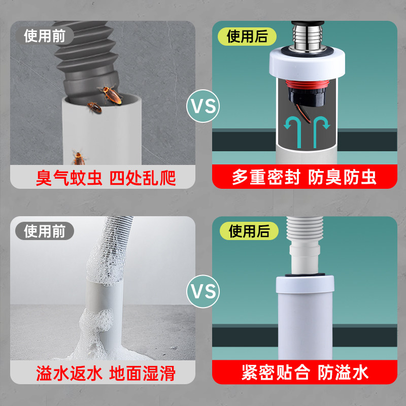 洗衣机地漏专用接头防臭三通排水管下水道防返臭神器防溢水二合一