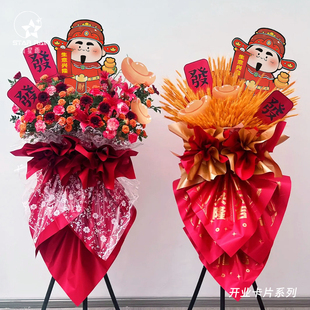 流星雨开业大吉生意兴隆花篮卡片财神爷贺卡花艺鲜花花束包装 材料