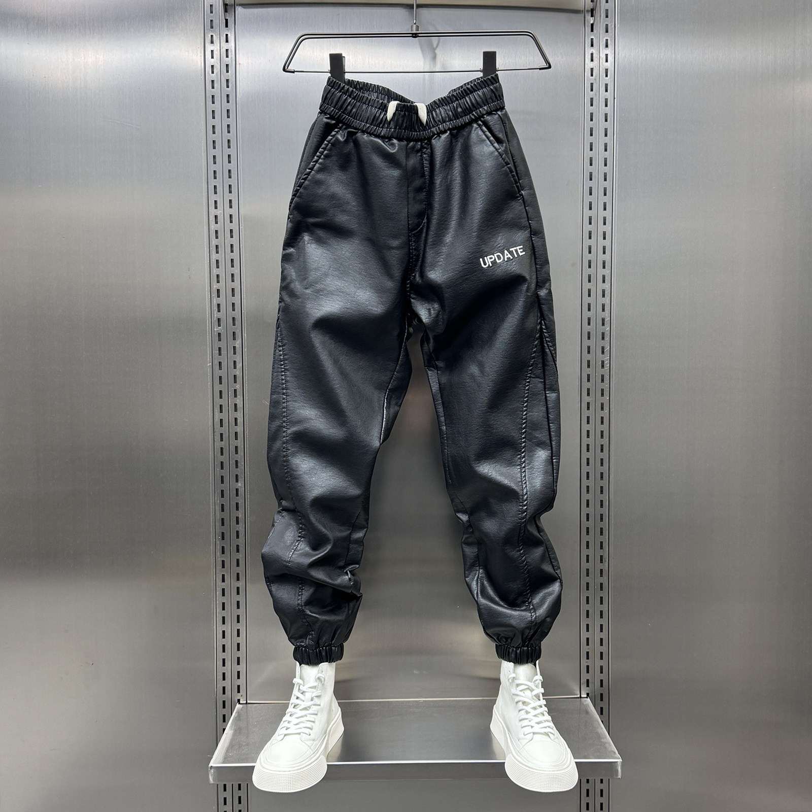 抗寒保暖休闲皮裤 机车骑行小脚长裤 男士 加绒加厚防风裤 秋冬季 美式