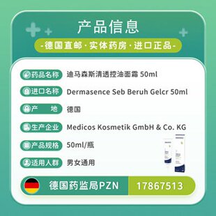 欧洲直邮德国药房Dermasence迪马森斯清透控油面霜50ml油皮正品