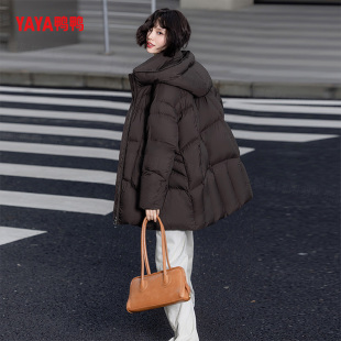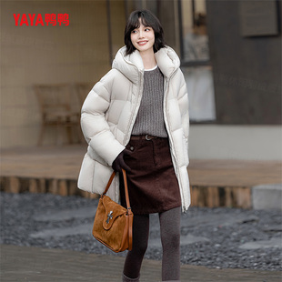 YAYA鸭鸭2025冬加厚时尚 羽绒服 百搭休闲连帽潮流宽松女士中长款
