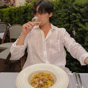 半袖 亚麻褂子衬衣修身 上衣 衬衫 复古重现古着原创白色棉麻长袖