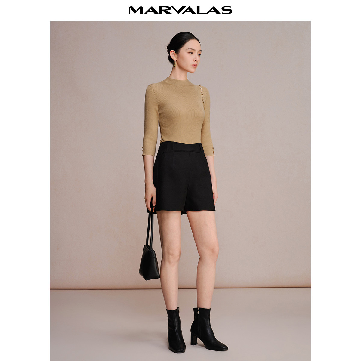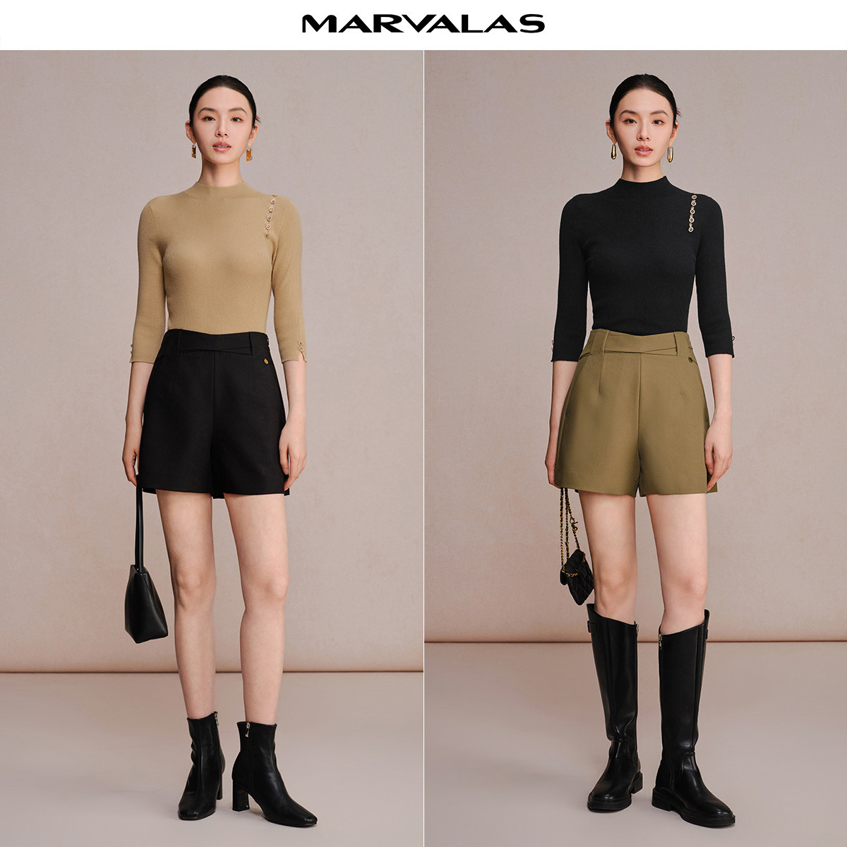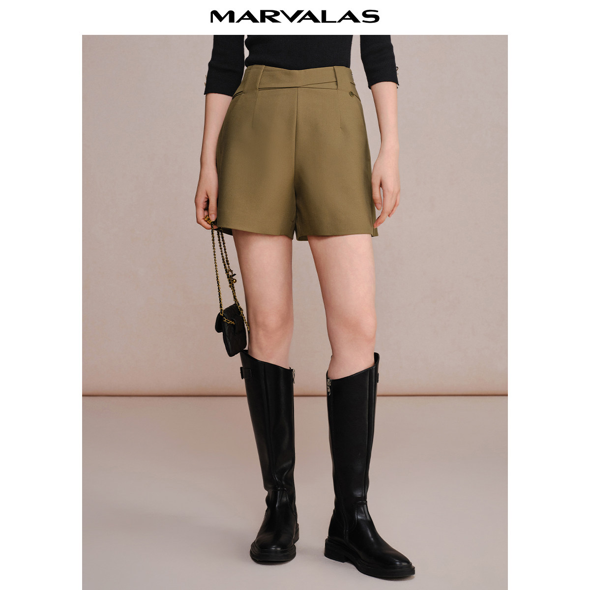 春秋新款 休闲裤 直筒OL西装 阔腿裤 子 裤 曼德诗高腰百搭短裤