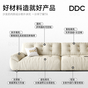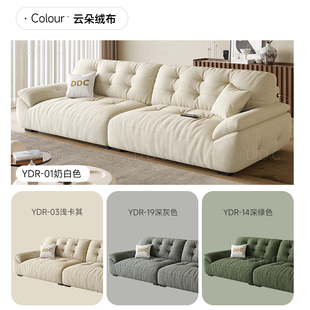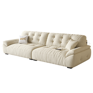 DDC云朵沙发布艺小户型客厅奶油风棉麻布沙发2025新款 多功能充电