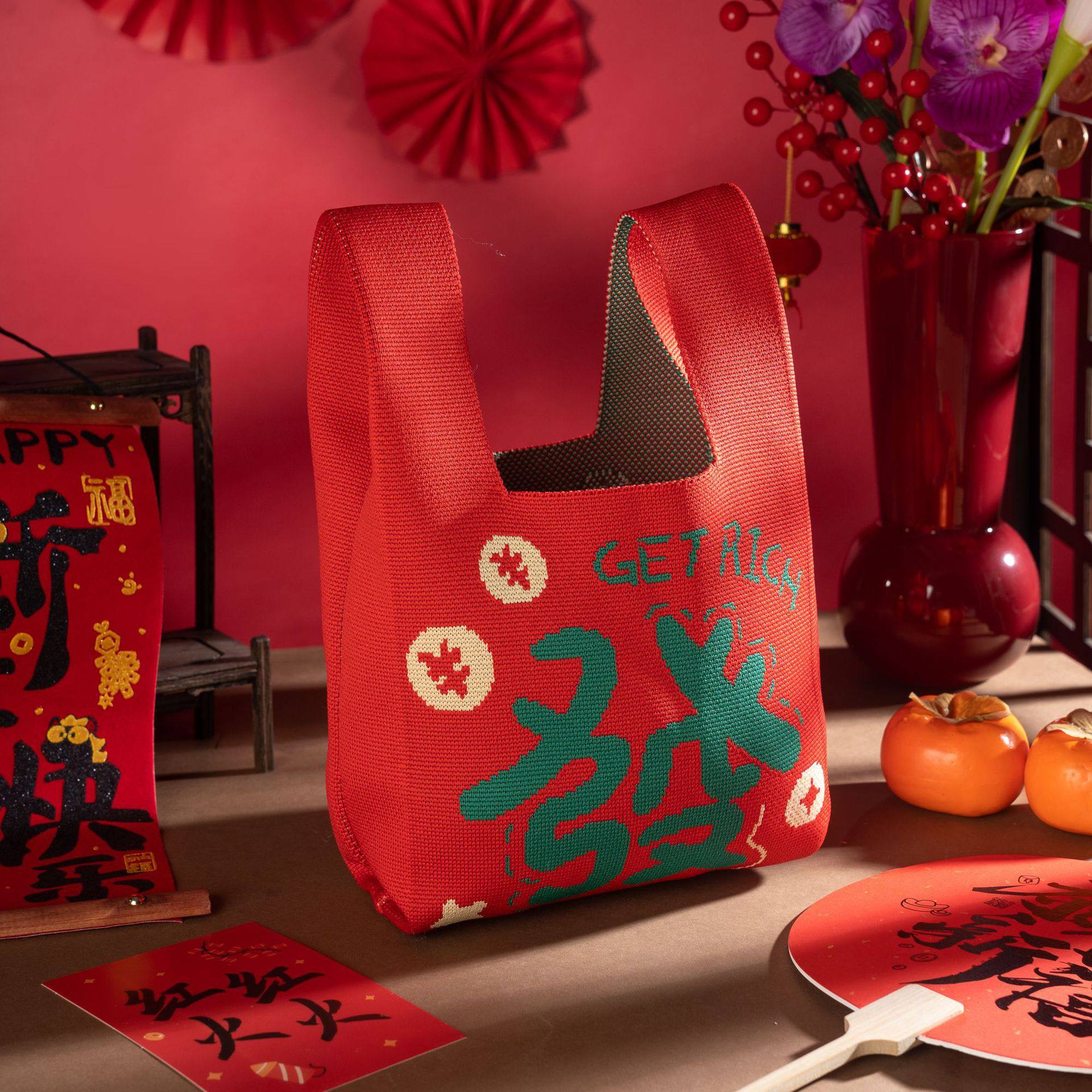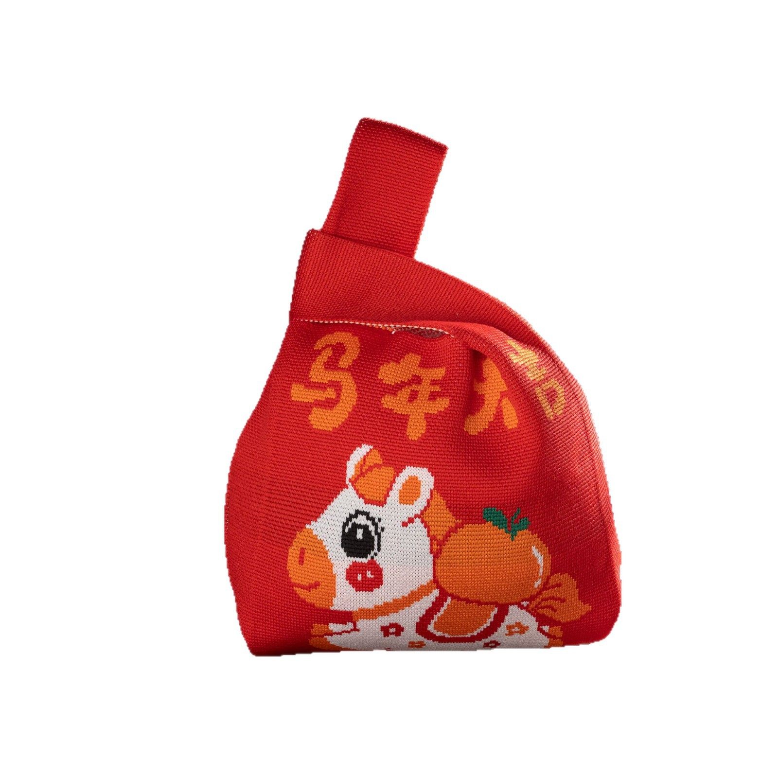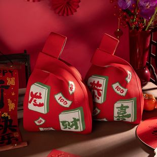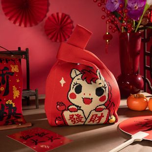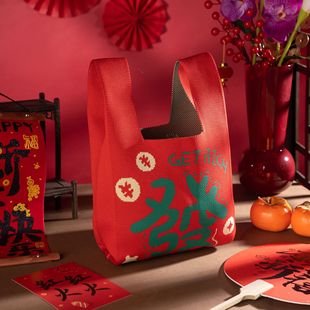 新节手提针织包年货礼品收纳袋生日红色喜庆伴手礼袋糖果手拎包包