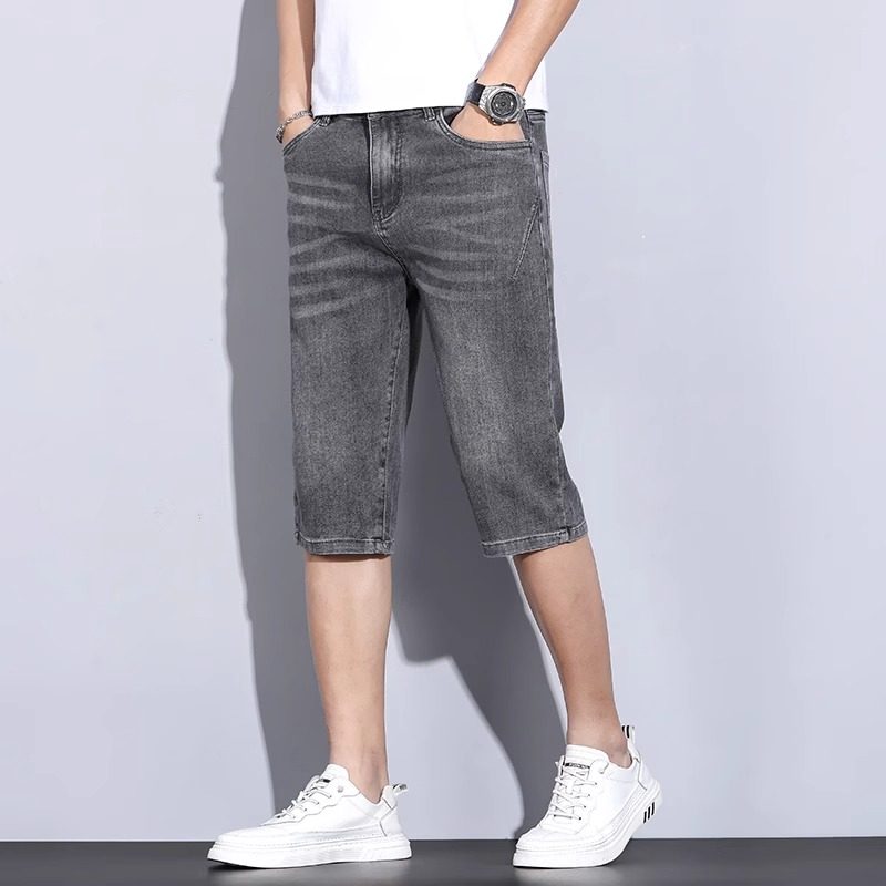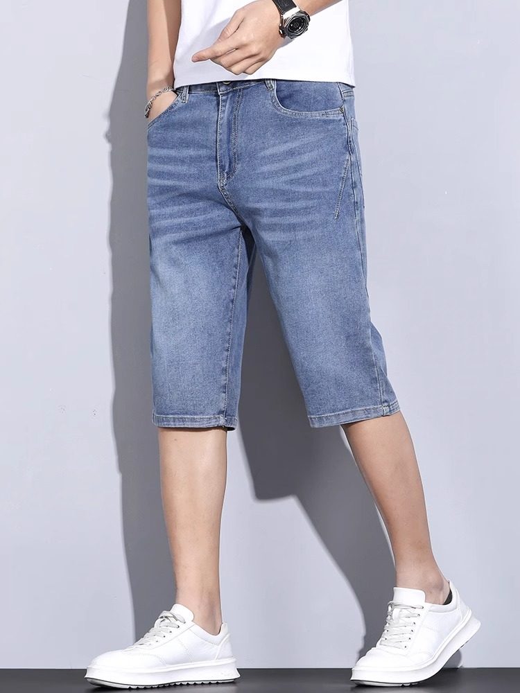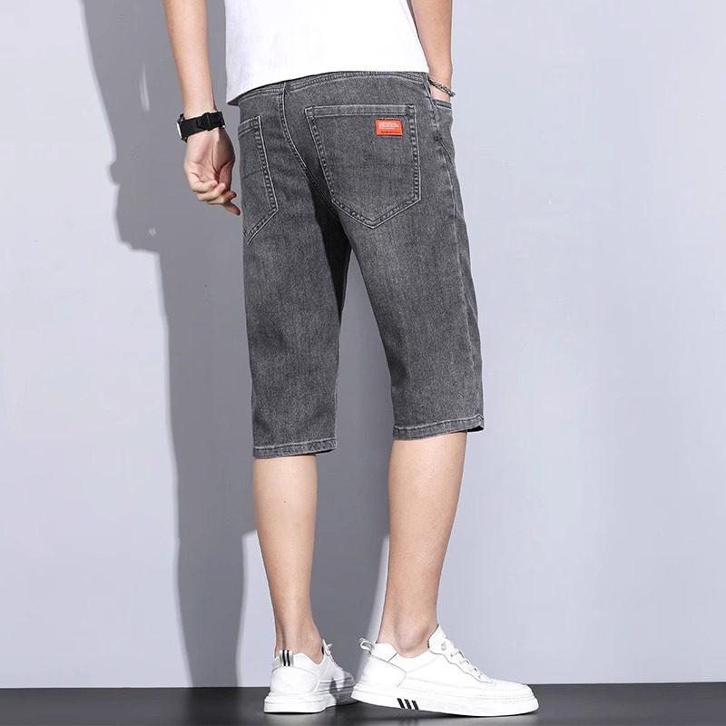 小脚长裤 弹力潮流蓝灰色修身 高端潮牌 男秋冬厚款 柔软印花牛仔裤