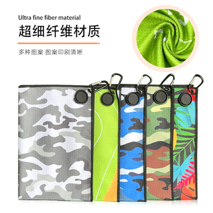 高尔夫球清洁毛巾新款 华夫格卡通印花便携磁吸扣挂钩球场擦杆毛巾