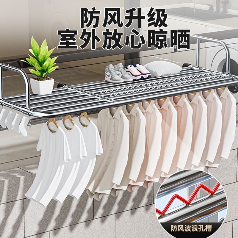 不锈钢可伸缩晾衣杆悬挂式 家用阳台晾衣神器衣服被子架升降衣架