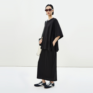 假两件中袖 LESS夏季 慵懒软糯棉连衣裙2P4G14290 精工系列