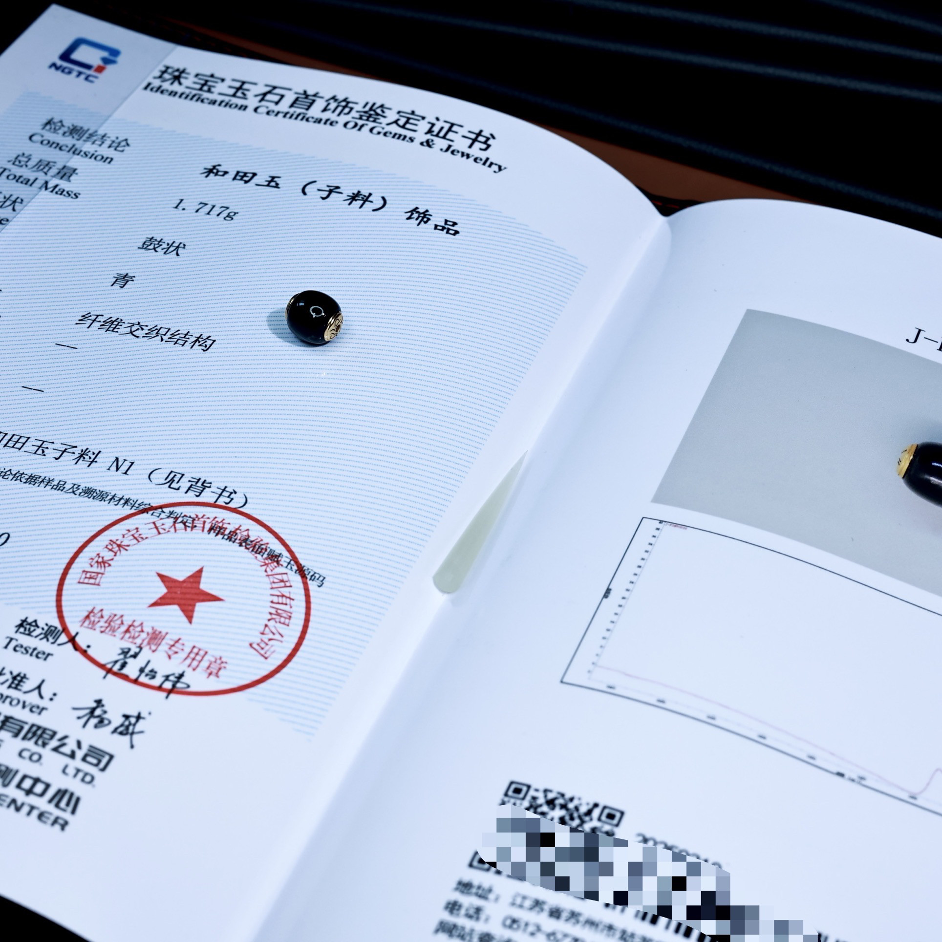 秋会长 和田玉新疆天然黑青籽料NGTC大证10x9mm金盾单珠配珠饰品