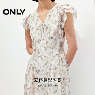 荷叶袖 修饰肩颈线条法式 春季 淡雅印花V领连衣裙女 ONLY奥莱