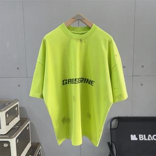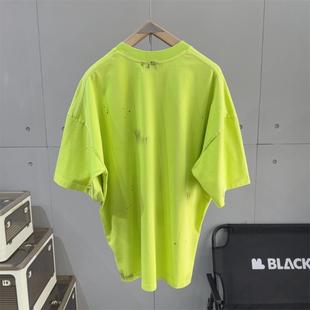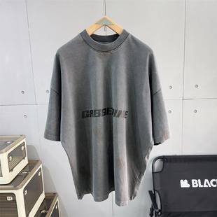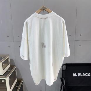 情侣宽松休闲半袖 设计感高街痞帅五分袖 T恤男士 潮牌水洗手绘短袖