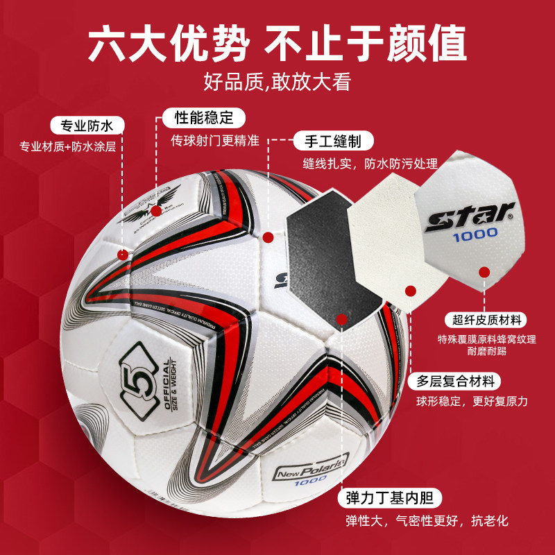 Star世达2000足球5号4号1000体考中考专用SB225P比赛用成人PU耐磨