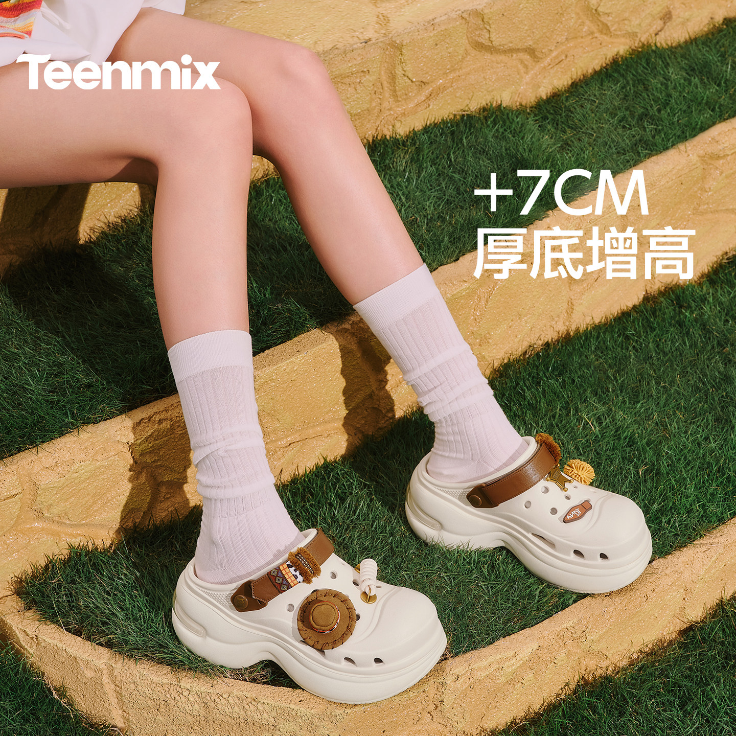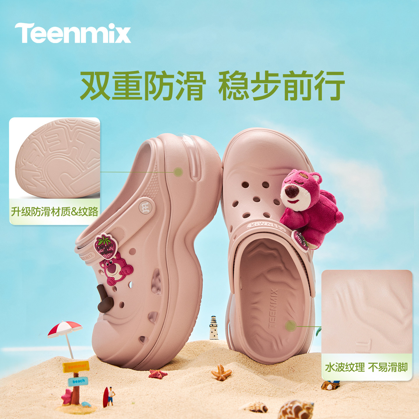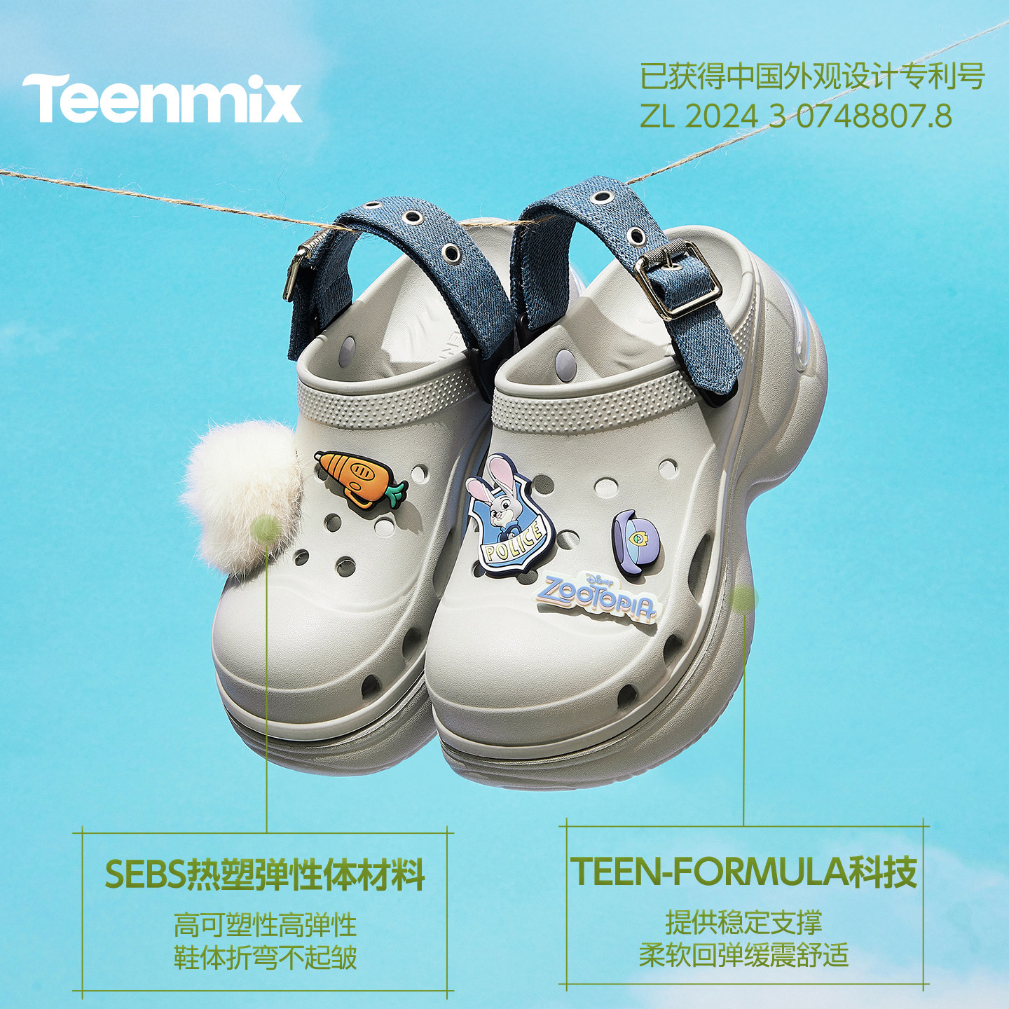 女厚底增高拖鞋 包头凉鞋 天美意疯狂动物城联名糖豆洞洞鞋 沈月同款